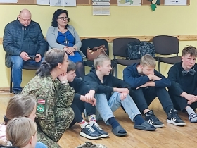 K. Vanaga –Vītoliņa demonstrēja arī kareivja ekipējumu, ko skolēniem bija iespēja pielaikot. Stāstīja par amata pienākumiem, atalgojumu, karjeras iespējām, nepieciešamo izglītību, kādu vajag iegūt, lai dienētu Bruņotajos Spēkos.