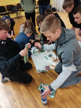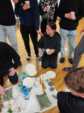 Skolēniem bija iespēja darboties komandās un noteiktā laikā ātri pagatavot pusdienas no produktiem, kurus lieto kareivji.