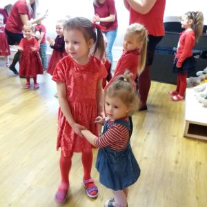 Draudzības rītā visi bijām saposušies sarkanās drēbēs un skolotājas Gunas pavadībā jauki atpūtāmies.