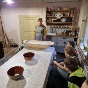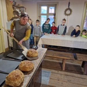 Skolēni piedzīvojas izzinošu nodarbību "Maizes cepšana". Mērķis bija iepazīt maizes cepšanas tradīciju Latvijā.